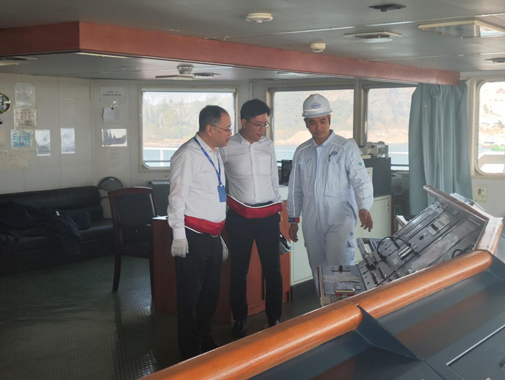中遠海運能源公司副總經(jīng)理秦炯、中遠海運能源公司油輪事業(yè)部副總經(jīng)理陳俊偉等一行在茂名港集團副總裁李昱祺的陪同下,來到停靠在茂名港集團東區(qū)化工碼頭E12泊位的“遵義潭”油輪上慰問船員,中遠海運能源公司廣州中心副總經(jīng)理施偉民與茂名港集團商務(wù)部負責人等陪同慰問。